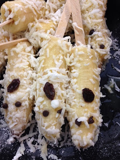 Then, as I wandered through a 1st grade room today, I ran into these little mice. Bananas on sticks, rolled in coconut with raisin and chocolate chip accouterments.